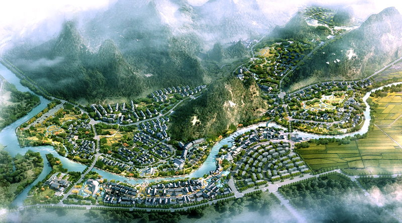 度假区整体规划占地面积约2200亩,总投资近40亿元。项目分三期递进式开发,一期已开放,以漓江“漁”文化为主题,依托大源河沿岸山水风光资源,打造漓江畔文化风情特色小镇;二期以田园生态游乐为主题,面向未来全家庭主流客群,打造田园亲子游乐、特色主题精品民宿等项目;三期以山林为主题,依托基地内凤凰山、童子山等多处山体高差变化及优美静谧的自然环境,打造野奢山林运动度假、会务康养等产品。构建观光旅游、人文体验、休闲度假、田园游乐、山林运动、会务康养、健康宜居多功能为一体的桂林国际化示范性度假小镇。