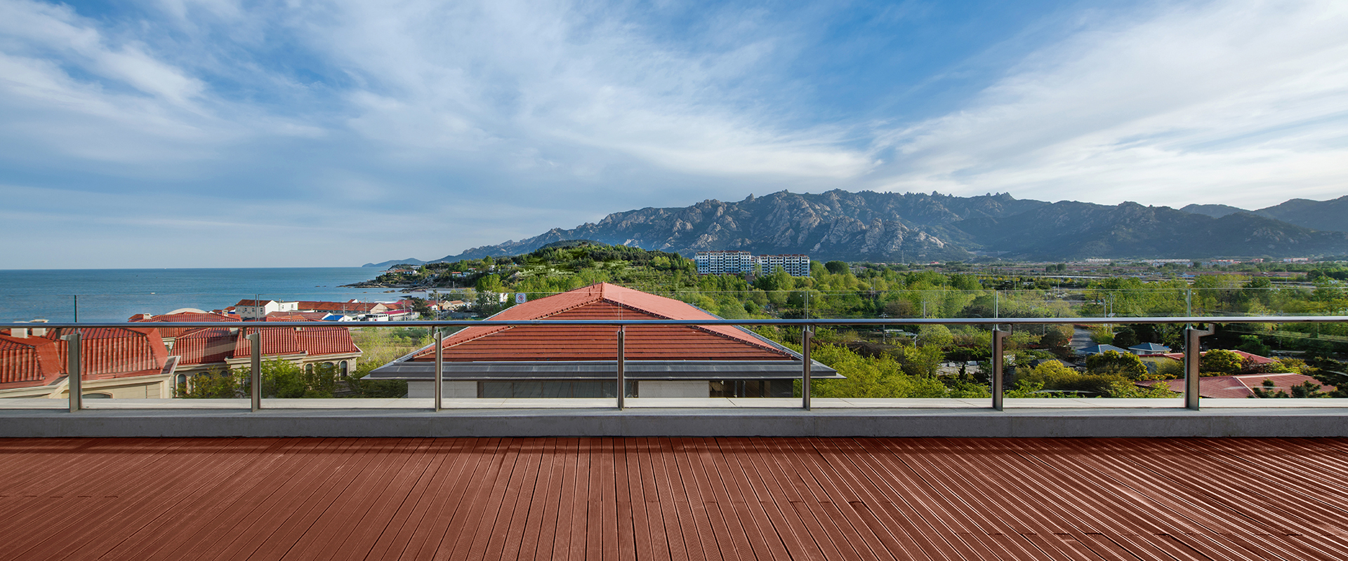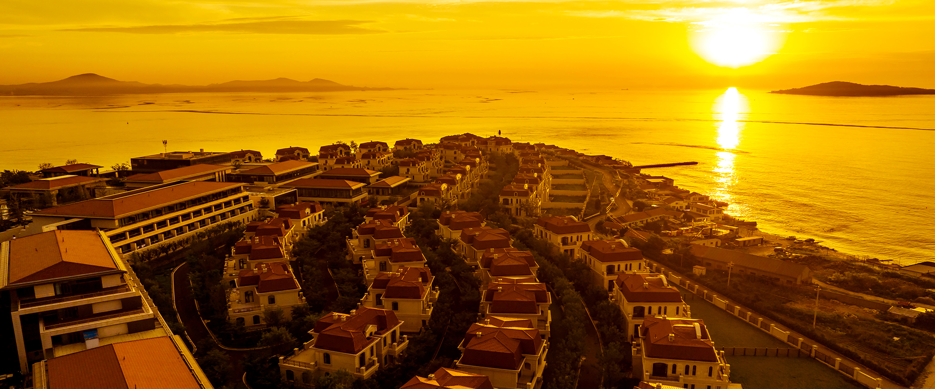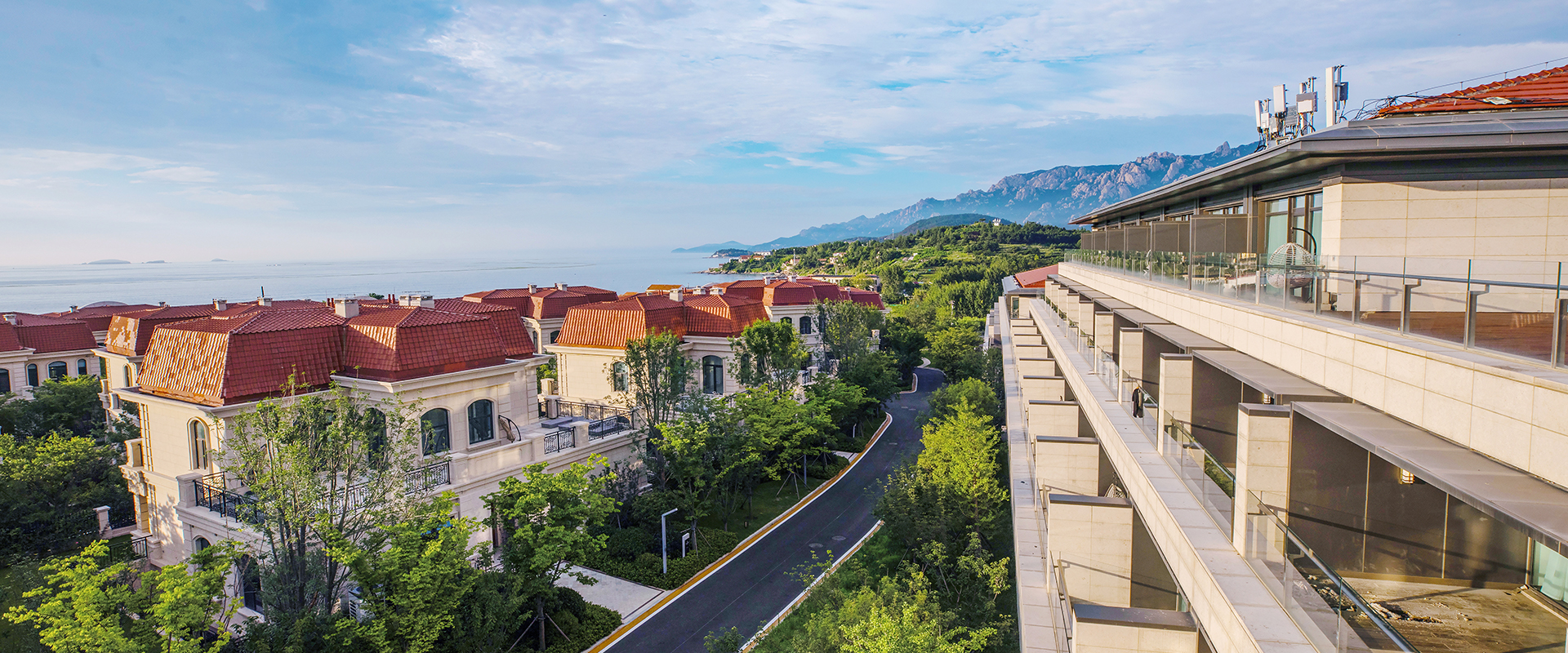 酒店建筑遵循“天人合一、浑然一体”的理念,以“静”与“净”为基调,借鉴日本、不丹、圣托里尼等全球知名度假目的地风格,凝练成“崂山黄海间,写意十二品”的独特景观体系。