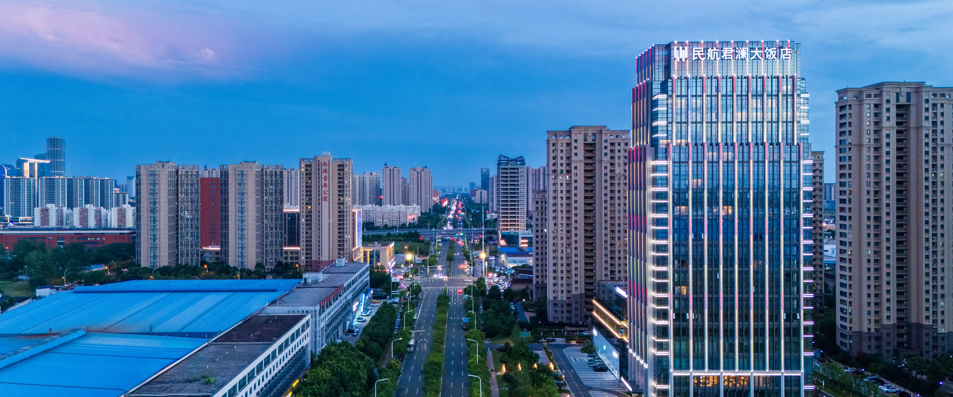 坐落于合肥市高新区航空新城,系合肥新桥国际机场市内配套项目“航空大厦”的重要组成部分,集城市航站楼、酒店等功能于一体。酒店地理位置优越、交通便捷,毗邻地铁二号线南岗站、砂之船奥莱、蜀西湖公园,酒店距离大蜀山森林公园7公里,距离合肥南站24公里,距离合肥新桥国际机场22公里。